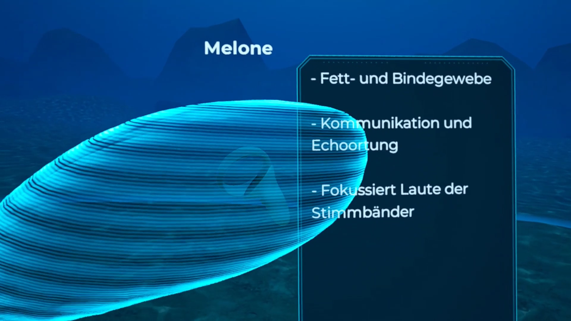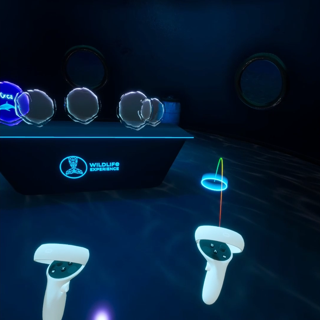 Als Probelevel entstand eine VR-Experience rund um den Orca, eine Spezies, die besonders stark unter der Haltung in Gefangenschaft leidet. In der Anwendung tauchen Nutzer:innen in die Unterwasserwelt des Tieres ein und können den Orca aus nächster Nähe erleben. Ergänzend werden Informationen zum Körperbau, Verhalten und natürlichen Lebensraum der Tiere vermittelt.